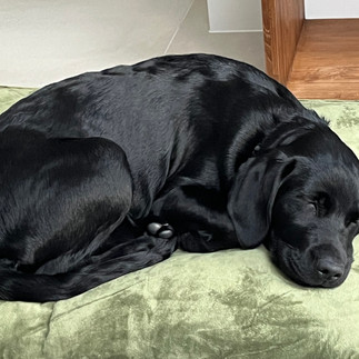 Our most exciting moment, though, came last week: Ulani had her very first free run at our local riding school! It was muddy, wet, and utterly wonderful. We were nervous about letting her off lead, but our fantastic Puppy Development Adviser, Beccy, was with us and reassured us every step of the way. After a few practice recalls on a long lead, we gave her the “Go free” cue and she was off—galloping joyfully, completely ecstatic. The sights, sounds, and smells were heaven for her. Beccy told us to keep walking so Ulani would learn to track and follow us, just as she’ll eventually need to do with her Guide Dog owner. Of course, she was far too excited at first and didn’t notice us moving away. When she finally looked up and couldn’t see us, panic set in, and she began darting around searching. As soon as she spotted us again she bounded right over, and from then on she stayed close and responded to every recall beautifully. She was covered in mud by the end of the walk—and so was I—but it was worth every second. She even had her first bath when we got home, which she loved, being a typical water-loving Lab Retriever.